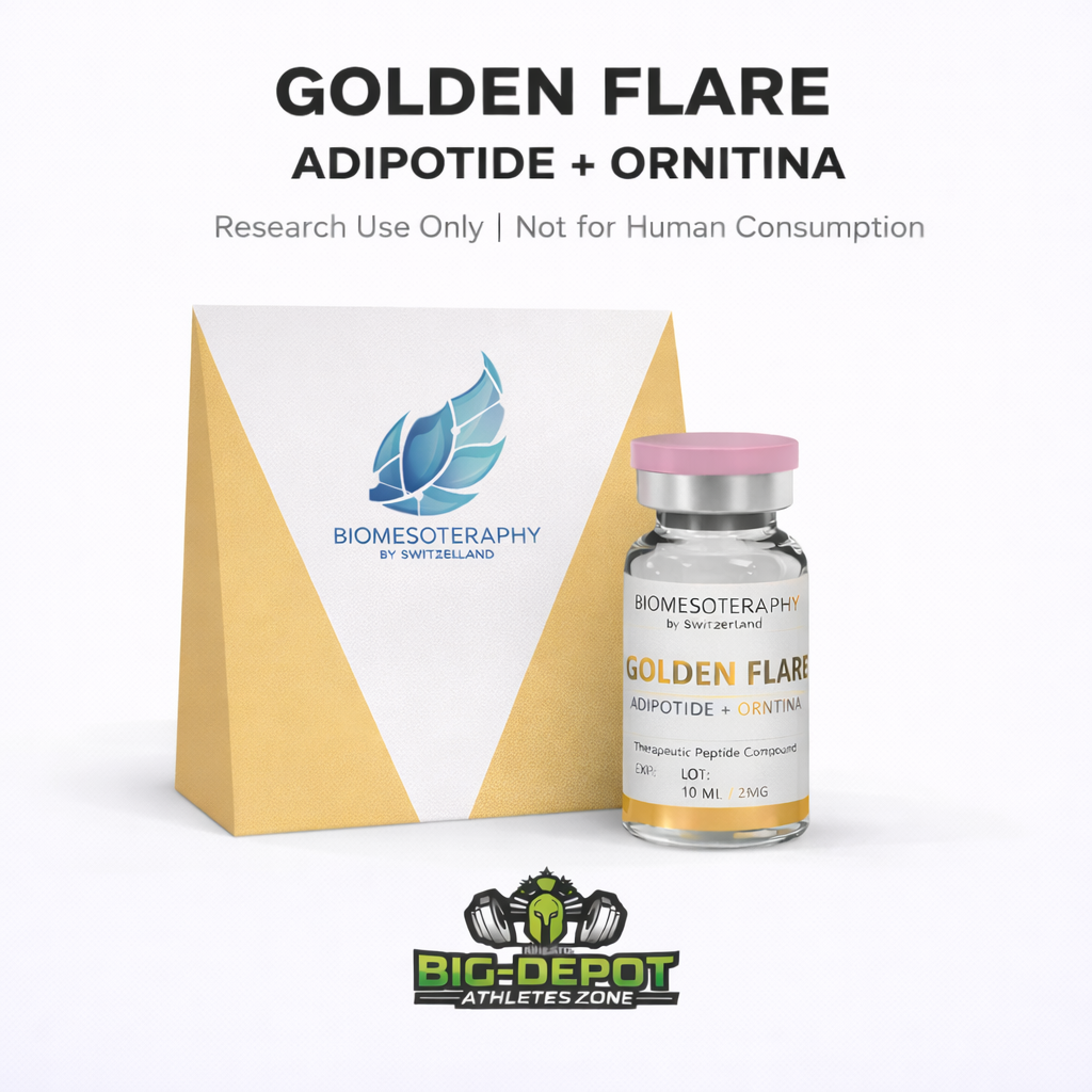 Golden Flare 10 ml – Adipotide + Ornitina de Biomesoteraphy by Switzerland es una solución avanzada de biotecnología estética diseñada para acompañar protocolos corporales dentro del entorno de la biomesoterapia profesional. Su formulación combina Adipotide y Ornitina, compuestos vinculados en literatura especializada con procesos metabólicos localizados y trabajo selectivo en zonas corporales específicas.