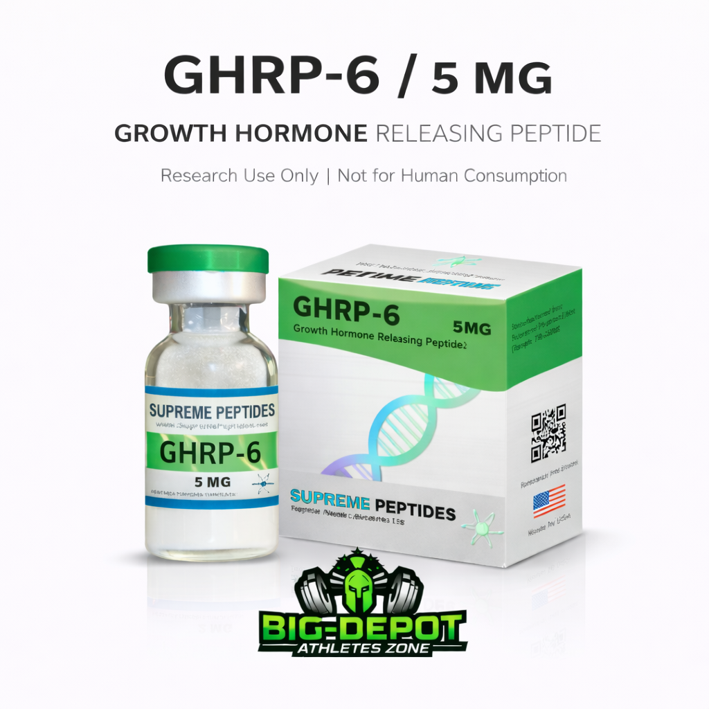 GHRP-6 de Supreme Peptides es un péptido bioactivo diseñado para estimular de forma endógena la liberación natural de hormona de crecimiento (GH) mediante la activación de los receptores de grelina. Es ampliamente reconocido por su capacidad para apoyar procesos de recuperación celular, metabolismo energético y balance corporal dentro de esquemas de investigación avanzada.